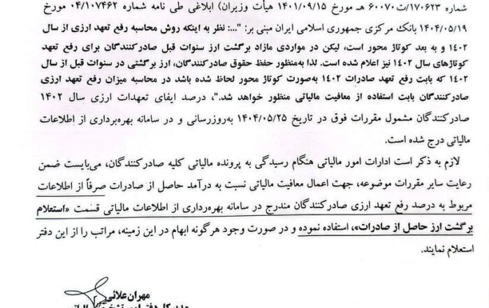 ✍️ دفتر امور تشخیص مالیاتی : ◾️ نظر به اینکه روش محاسبه رفع تعهد ارزی از سال ۱۴۰۲ کوتاژمحور است لیکن در مواردی مازاد برگشت ارز از سنوات قبل صادرکنندگان برای رفع تعهد کوتاژهای سال ۱۴۰۲ نیز اعلام شده است، لذا به منظور حفظ حقوق صادرکنندگان ارز برگشتی در سنوات