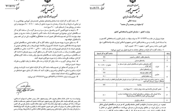 وضعیت ساعت کار ادارات از ١۵ شهريور